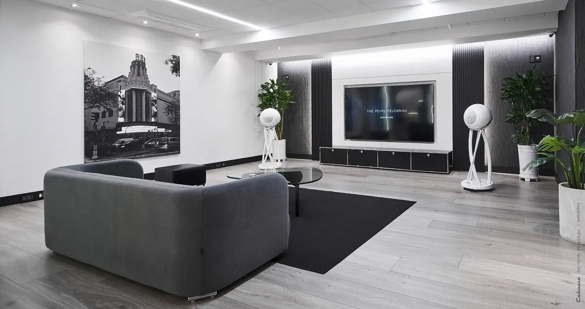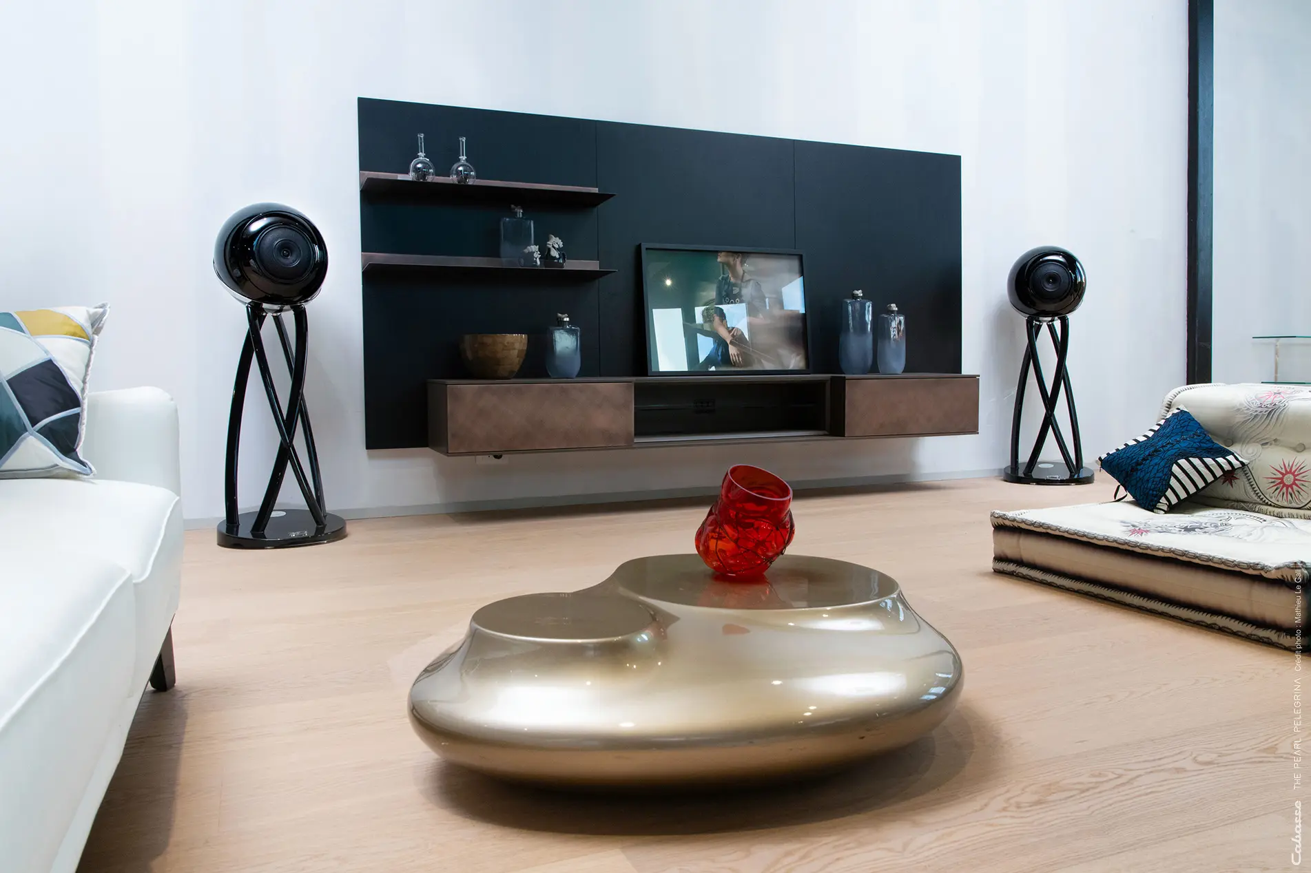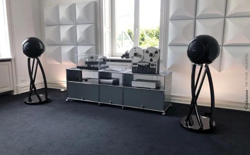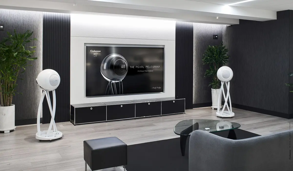 Những người sành về thương hiệu sẽ nhận ra chiếc đế với đường cong Lissajous – biểu tượng đã đồng hành cùng Cabasse từ khi mới thành lập. THE PEARL PELEGRINA có một vòng kim loại gương được cắt tùy chỉnh, bao quanh quả cầu, làm nổi bật những chi tiết tinh tế và lớp hoàn thiện bóng bẩy, khiến hệ thống này trở thành một tác phẩm thực sự độc đáo.